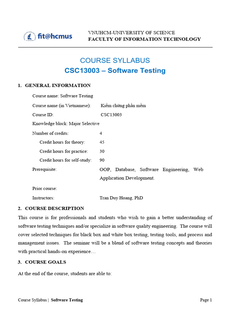 CSC13003 Software Testing Syllabus | PDF | Selenium (Software ...