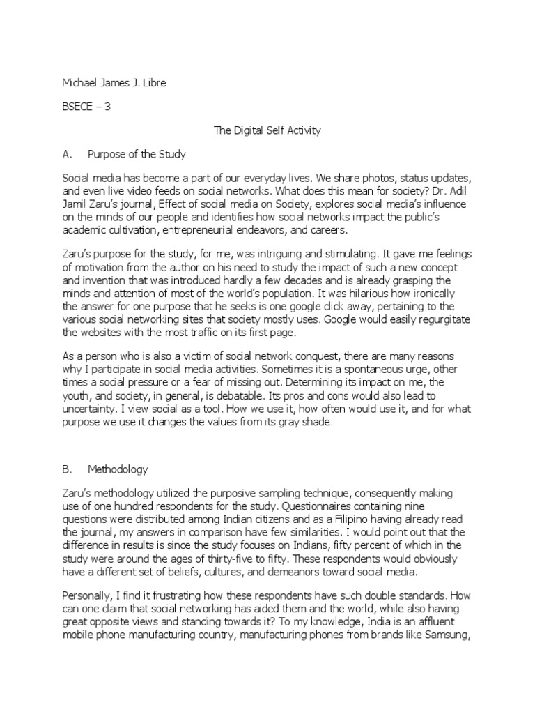 PSYCH031 The Digital Self Activity - Libre | PDF | Social Media ...