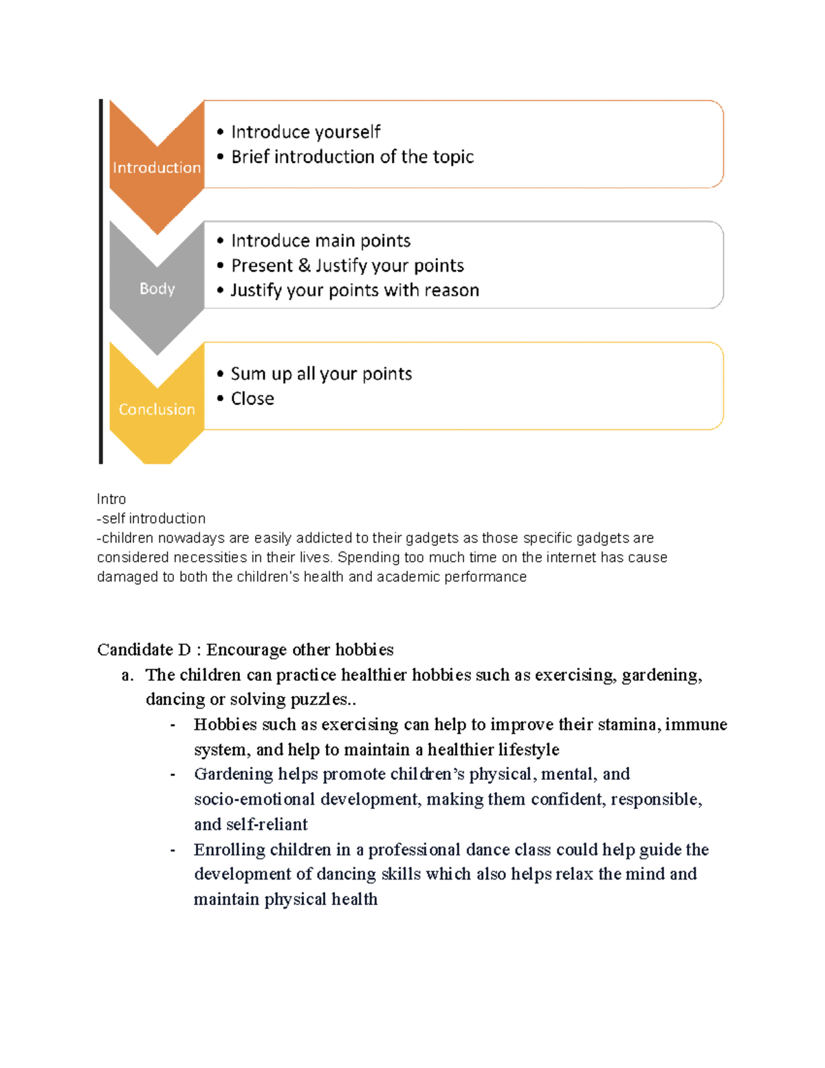 - Mind Mapping your topic - Intro -self introduction -children nowadays ...