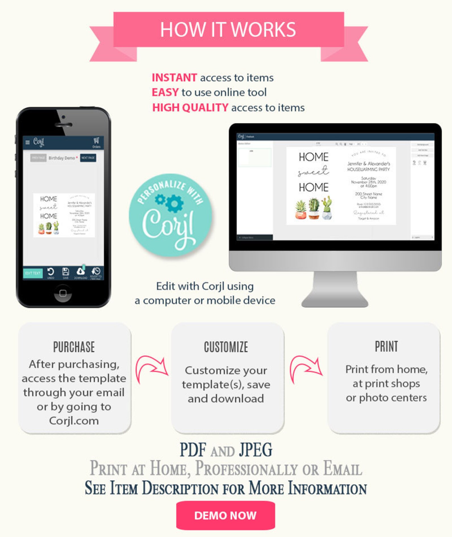 Succulent Housewarming Party Invitation, Self-template Template, Print ...