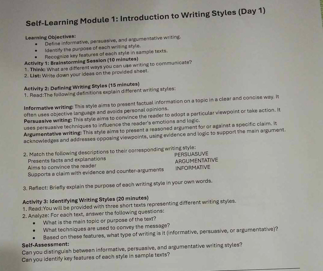 Self-Learning Module For Senior High School Students | PDF ...