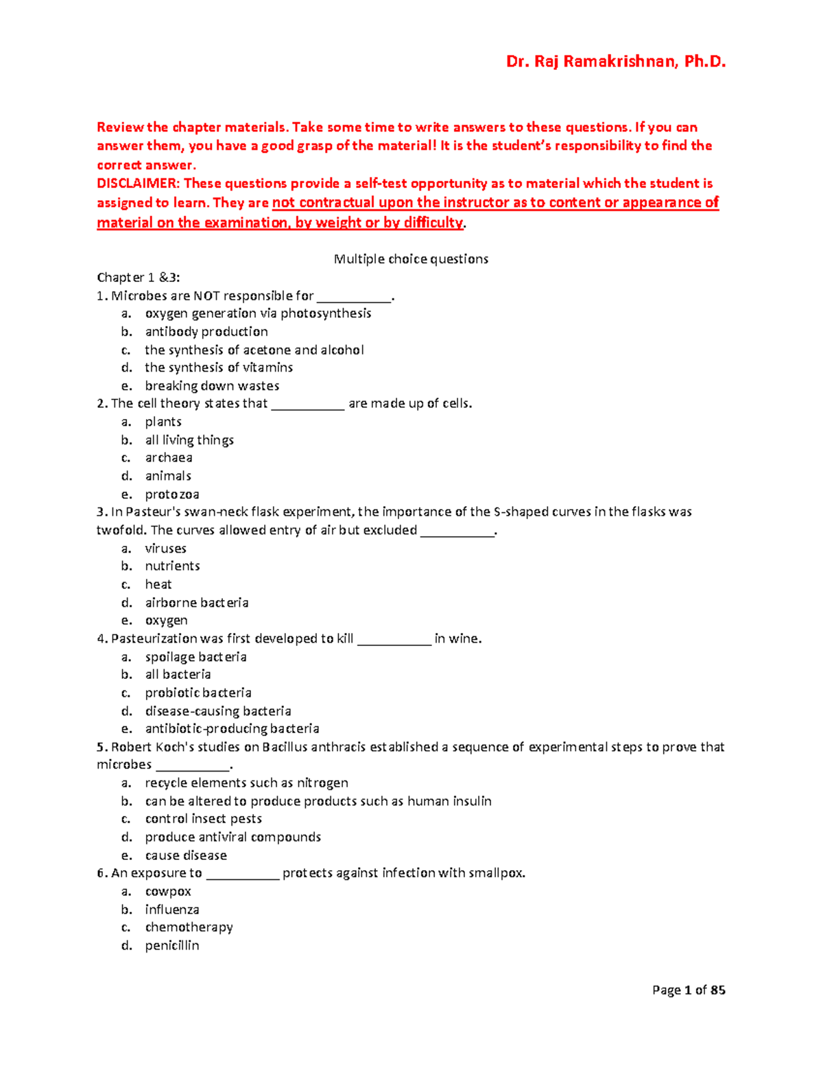 Self Test-Practice Questions - Review the chapter materials. Take some ...