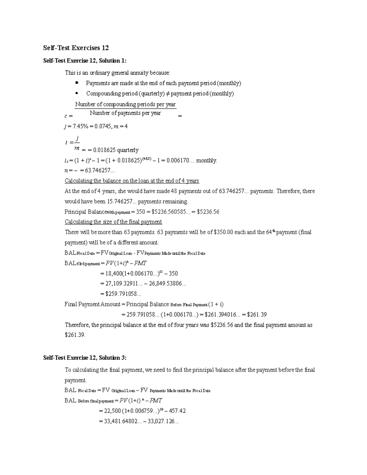 Self Test Exercises 12 - Textbook Questions - Self-Test Exercises 12 ...