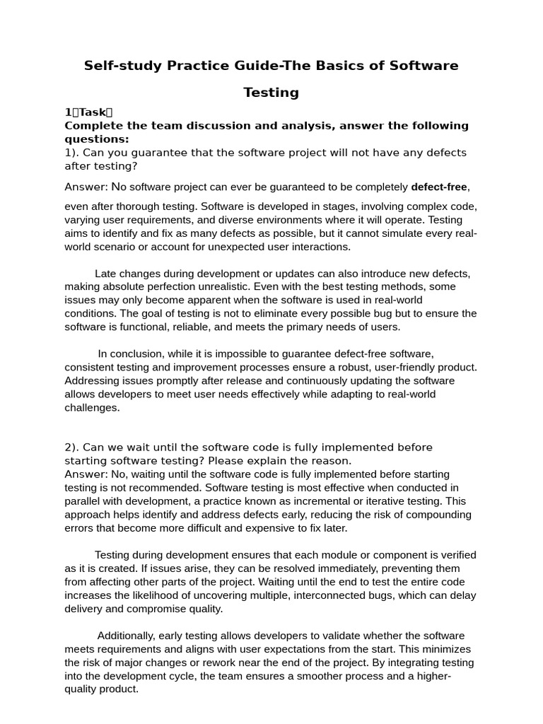 Self-Study Practice Answers | PDF | Software | Software Testing