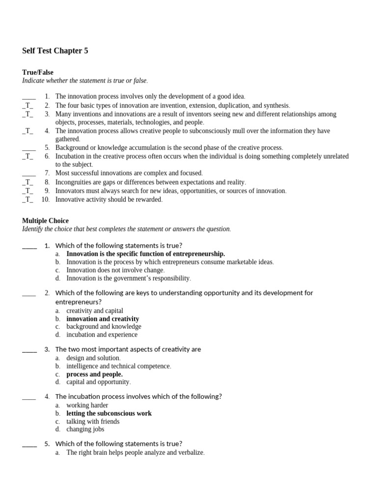 Self Test Exercises 5 - notes - Self-Test Exercises 5 Self-Test ...