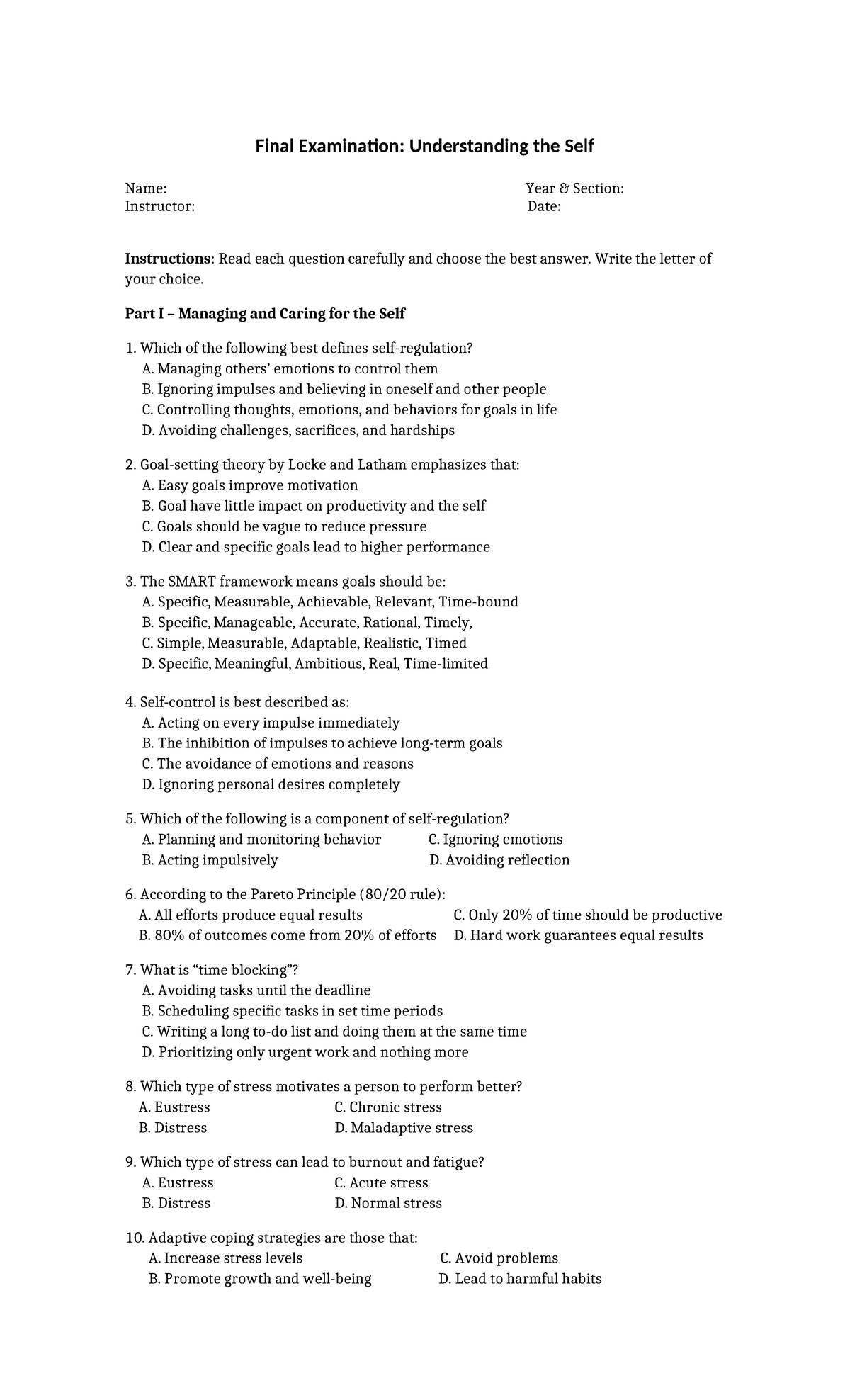 Final Exam UTS ENG 1B: Understanding the Self and Political Self - Studocu