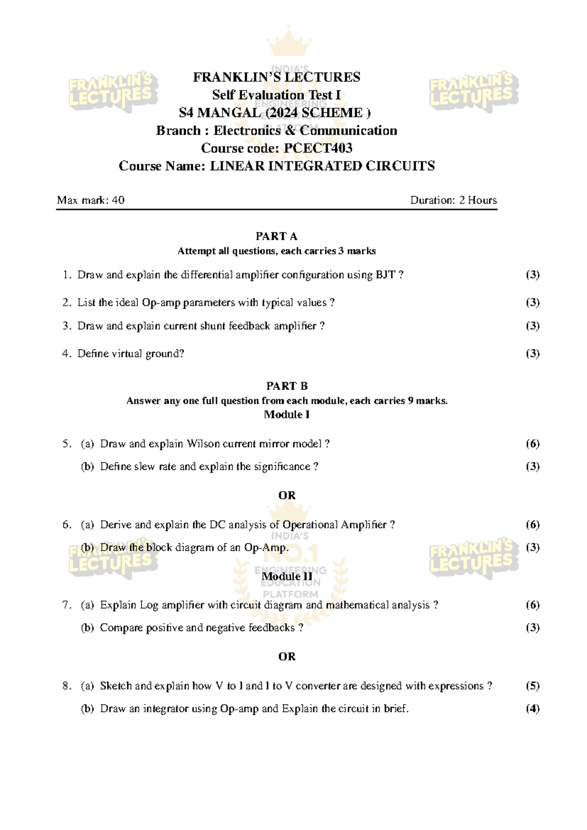 S4 LECTURES Self Evaluation Test I PCECT403 - Linear Integrated ...