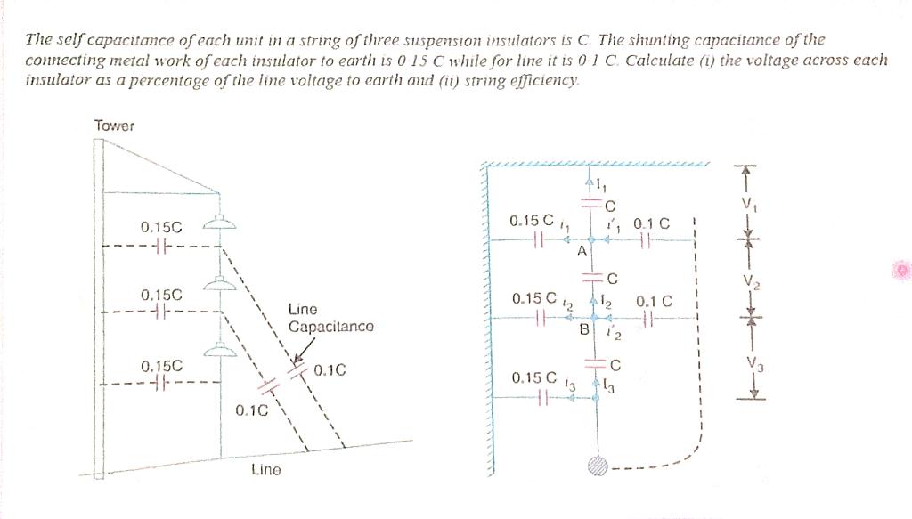 [Solved] A string of four insulators has a self-capacitance equal to 5 ...