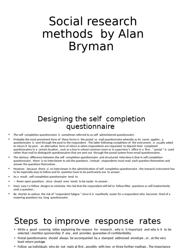 Chapter 9 Self-completion Questionnaires - Chapter 9: Self-completion ...