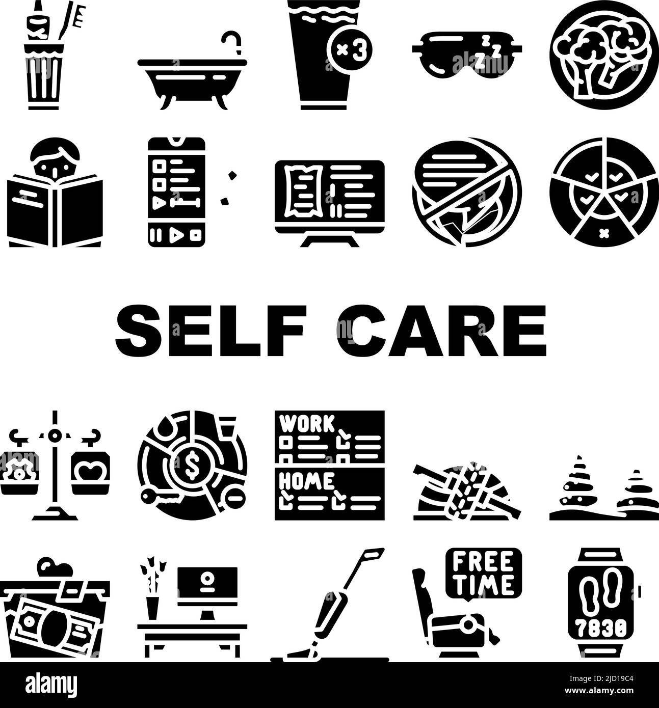 Self Care Procedure And Life Task Icons Set Vector Stock Vector Image ...