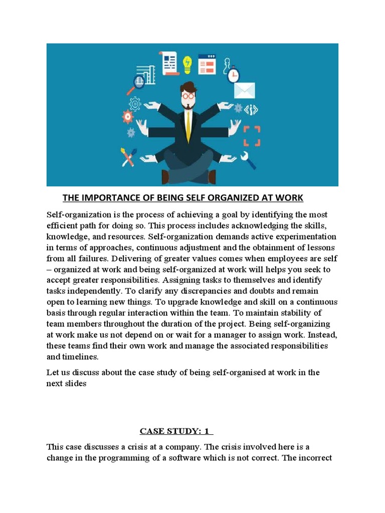 Importance of Being Self Organized at Work | PDF | Self Organization ...
