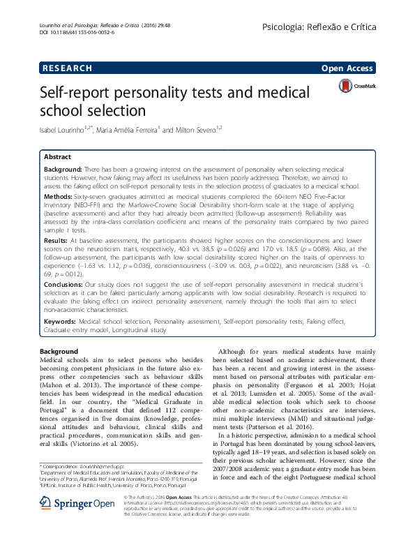 (PDF) Self-report personality tests and medical school selection