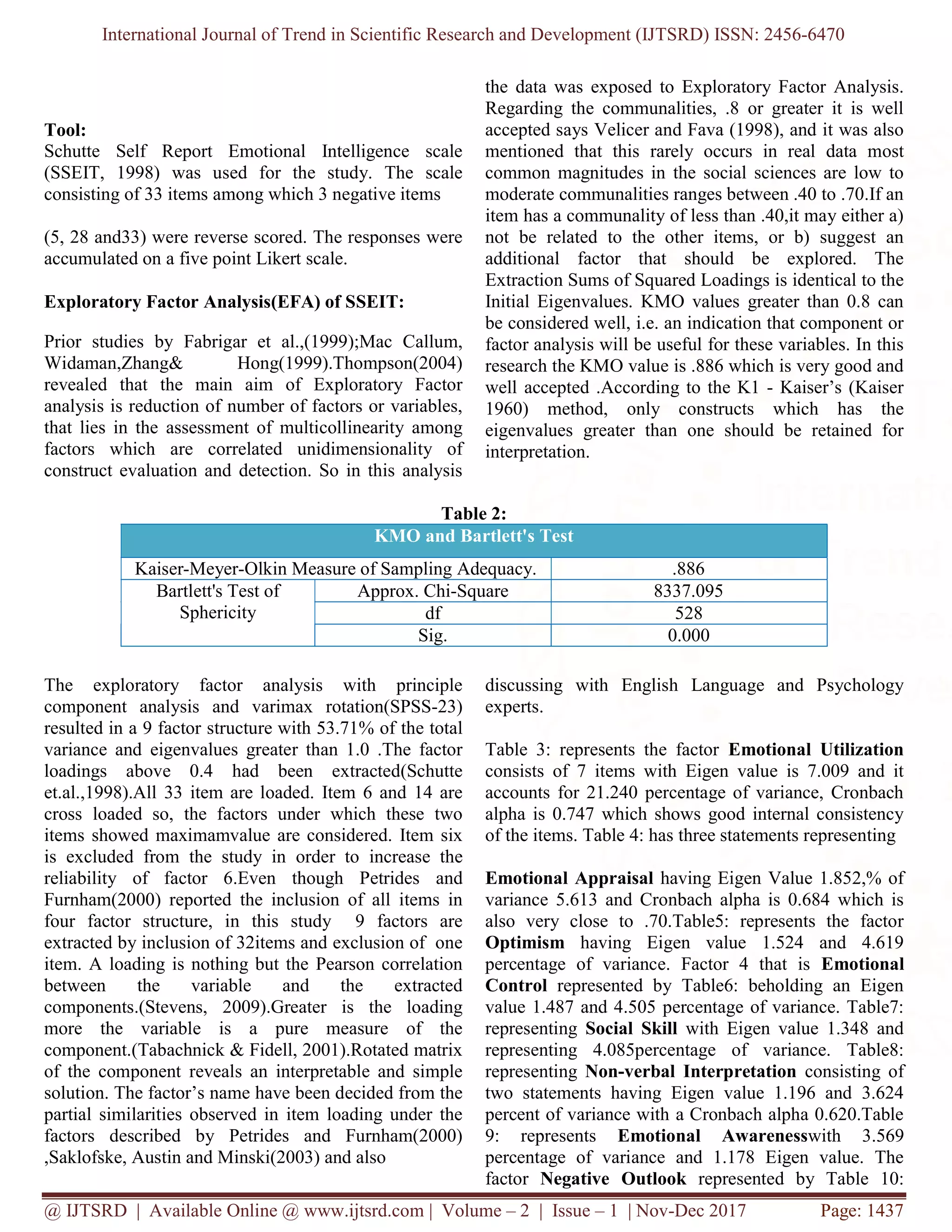 A Snooping on the Factor Structure of Schutte Self-Report Emotional ...