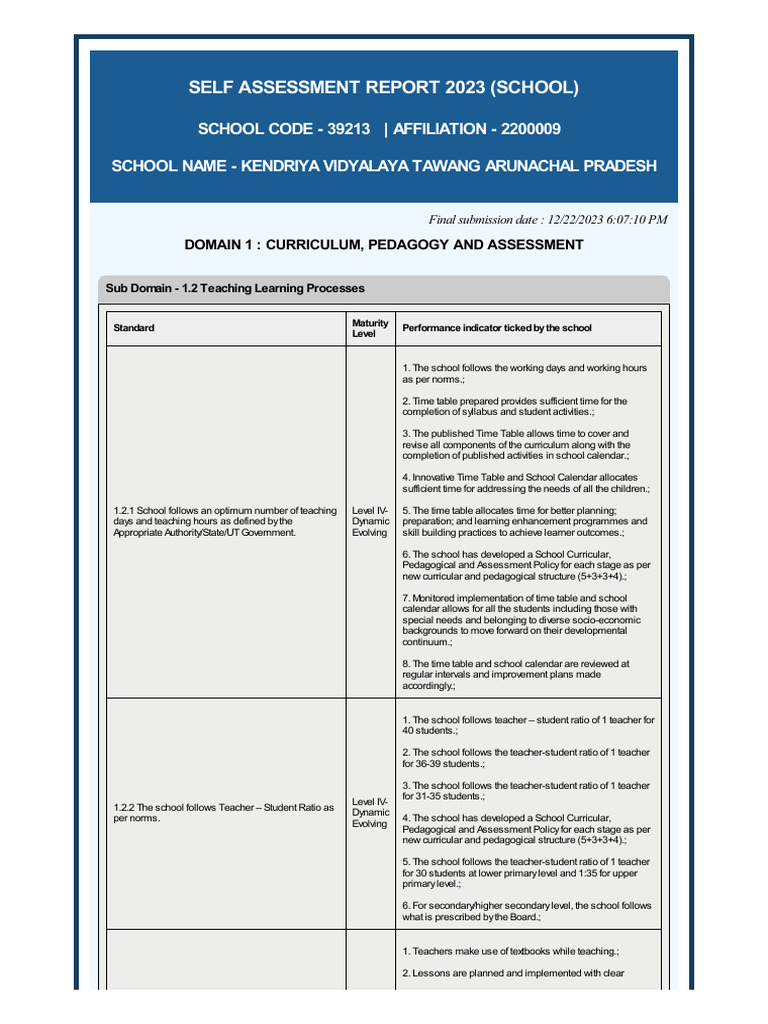 Self Assessment Report 2023 (School) | PDF | Teachers | Curriculum