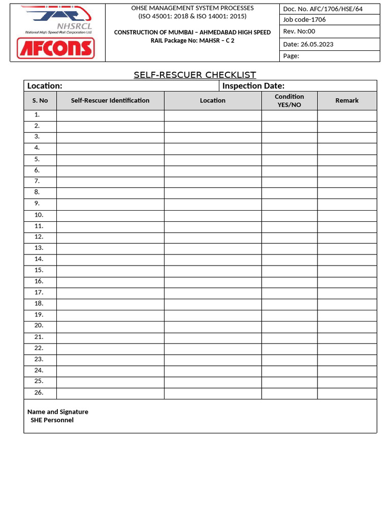 Self-Rescuer Checklist | PDF