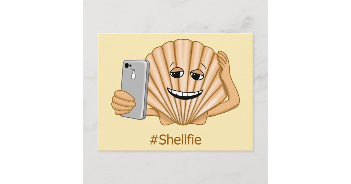 Funny Seashell Taking Cell Phone Shellfie Selfie Postcard | Zazzle