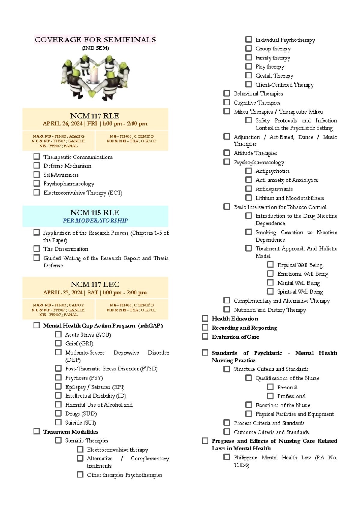 2nd sem - semifinal coverage [checklist] - COVERAGE FOR SEMIFINALS (2ND ...