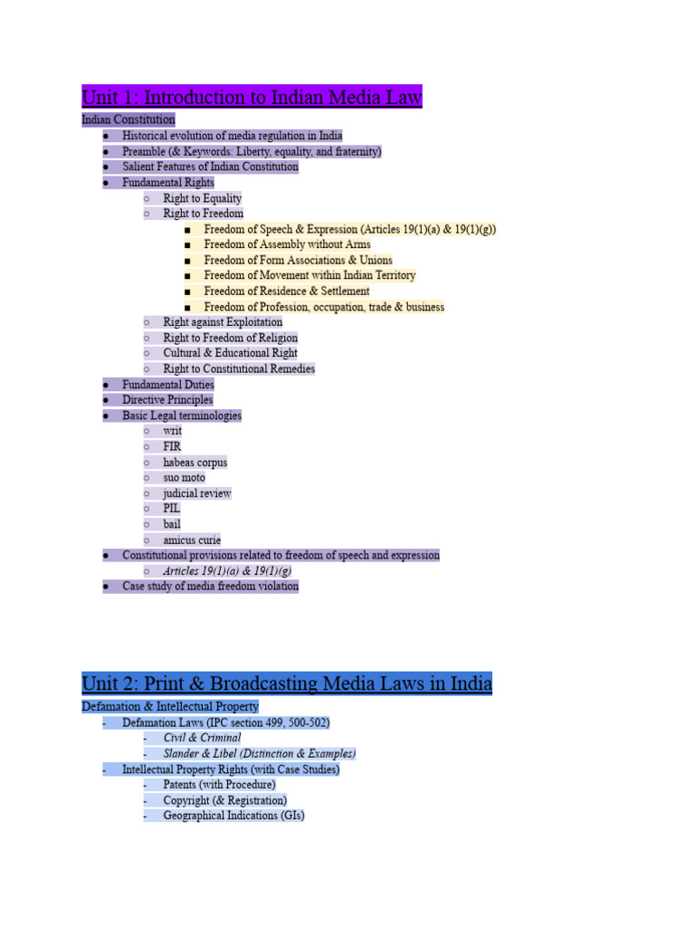 Media Law & Ethics End-Sem Checklist | PDF | Habeas Corpus | Defamation