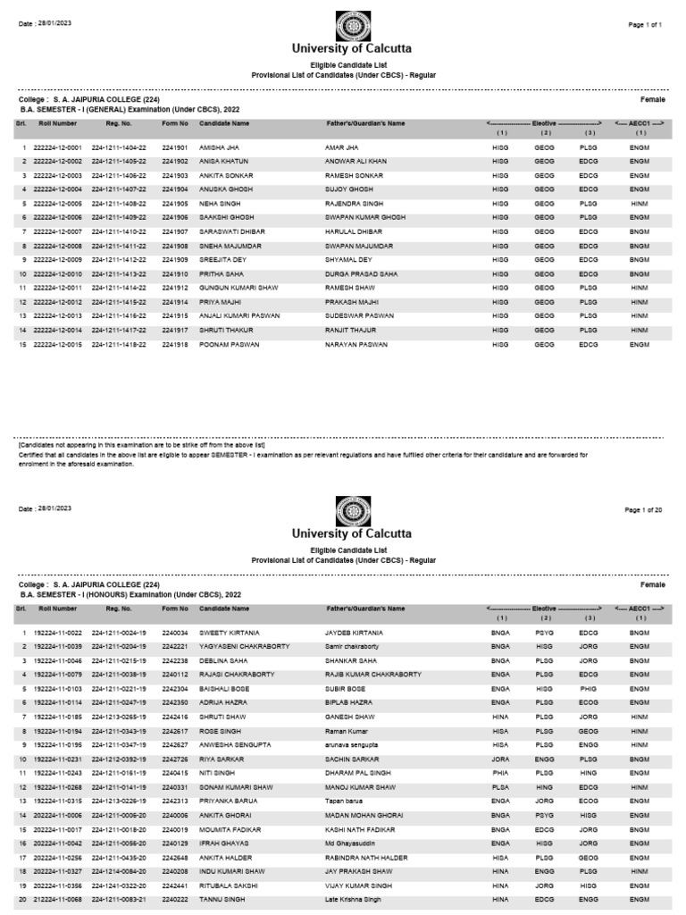 CU 5th Sem Checklist 2022 (OUT), Check Calcutta University Student List