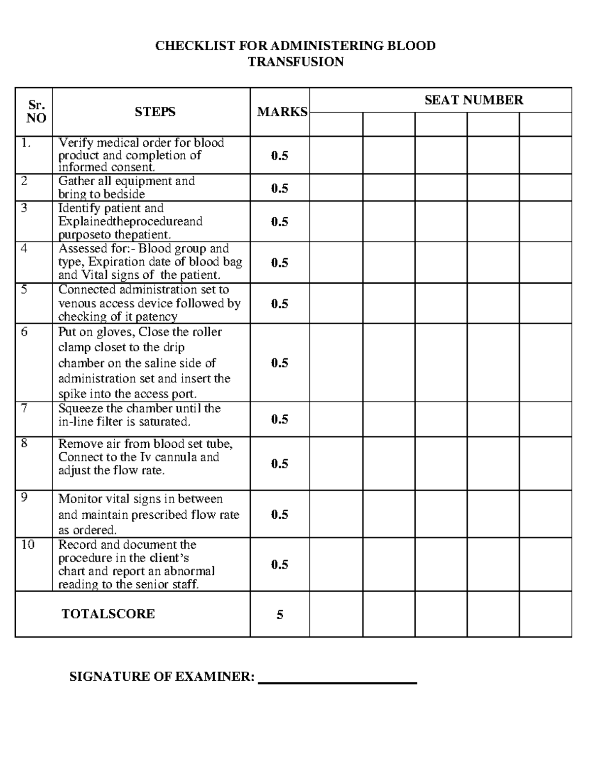 OSCE 4TH SEM: Comprehensive Checklist for Blood Transfusion & Care ...