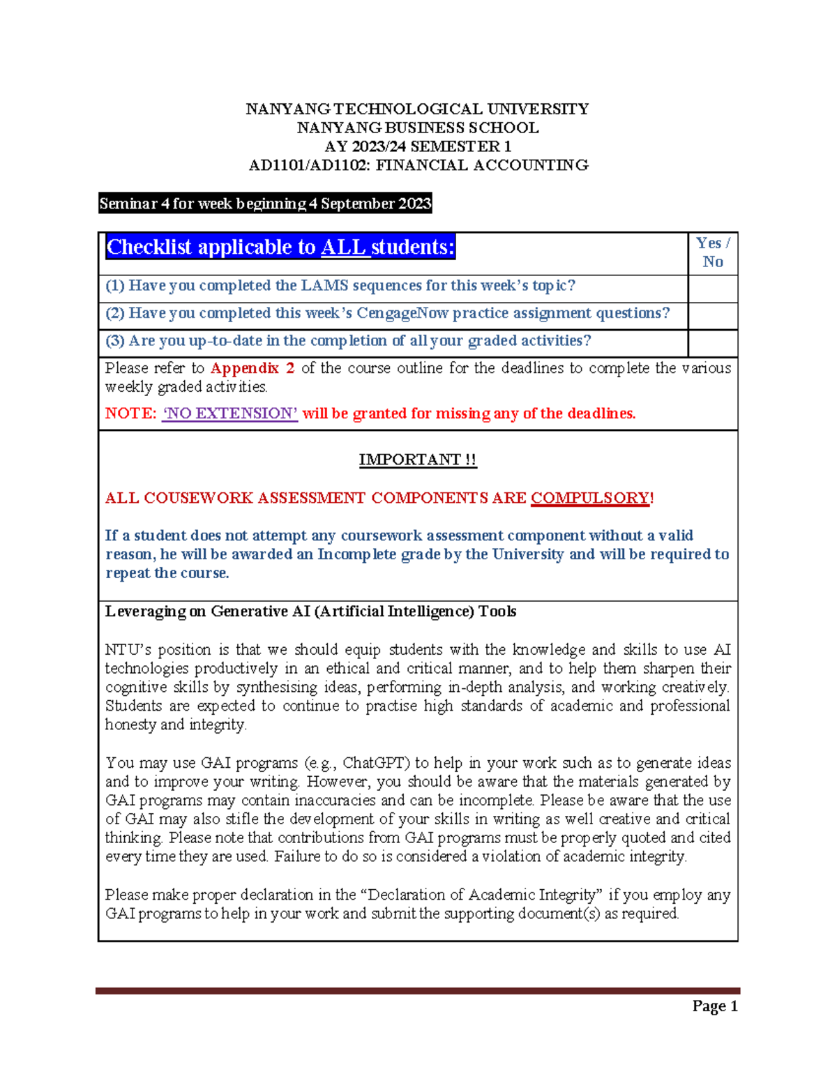 AD1101/AD1102 Financial Accounting Sem 4 Checklist & Assignments Guide ...