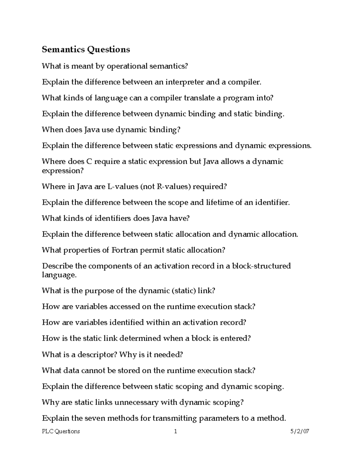 Semantics and Interpreter with attribute grammar - PLC Questions 1 5/2 ...