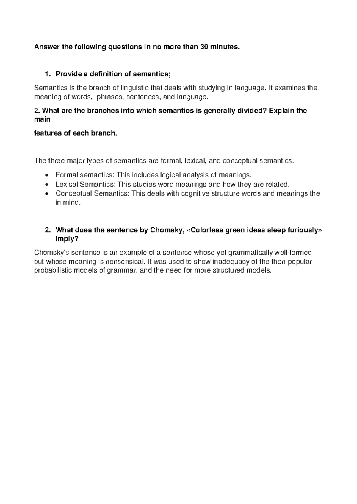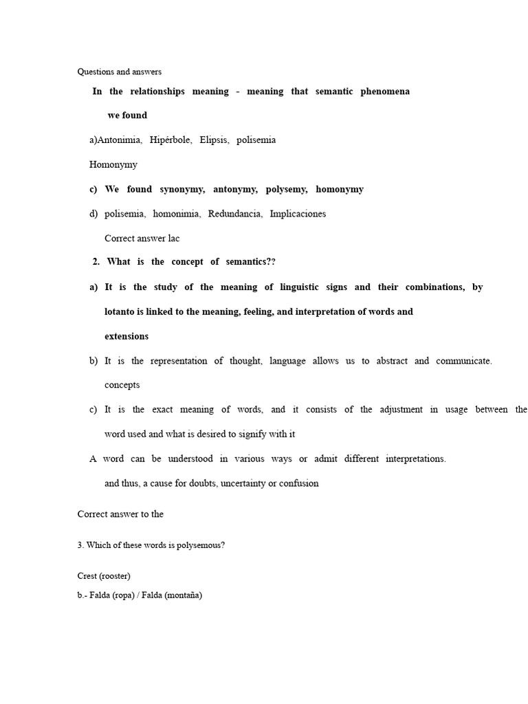 Questions and Answers. Semantic Phenomena COMPLETE | PDF | Semantics | Word