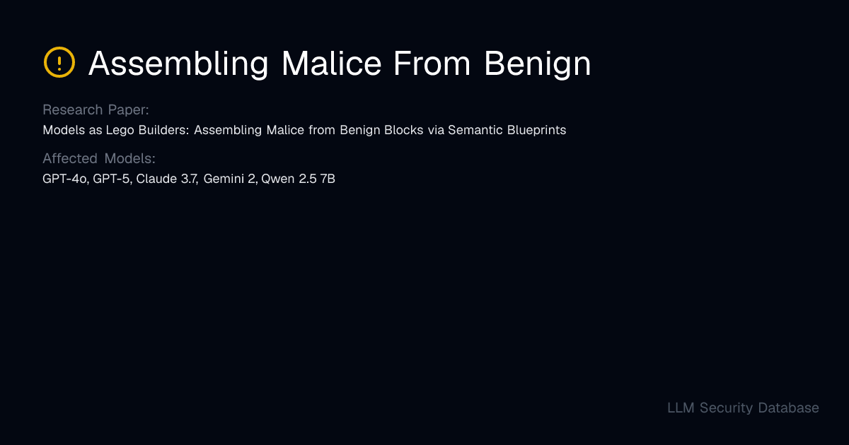 Assembling Malice From Benign | LLM Security Database