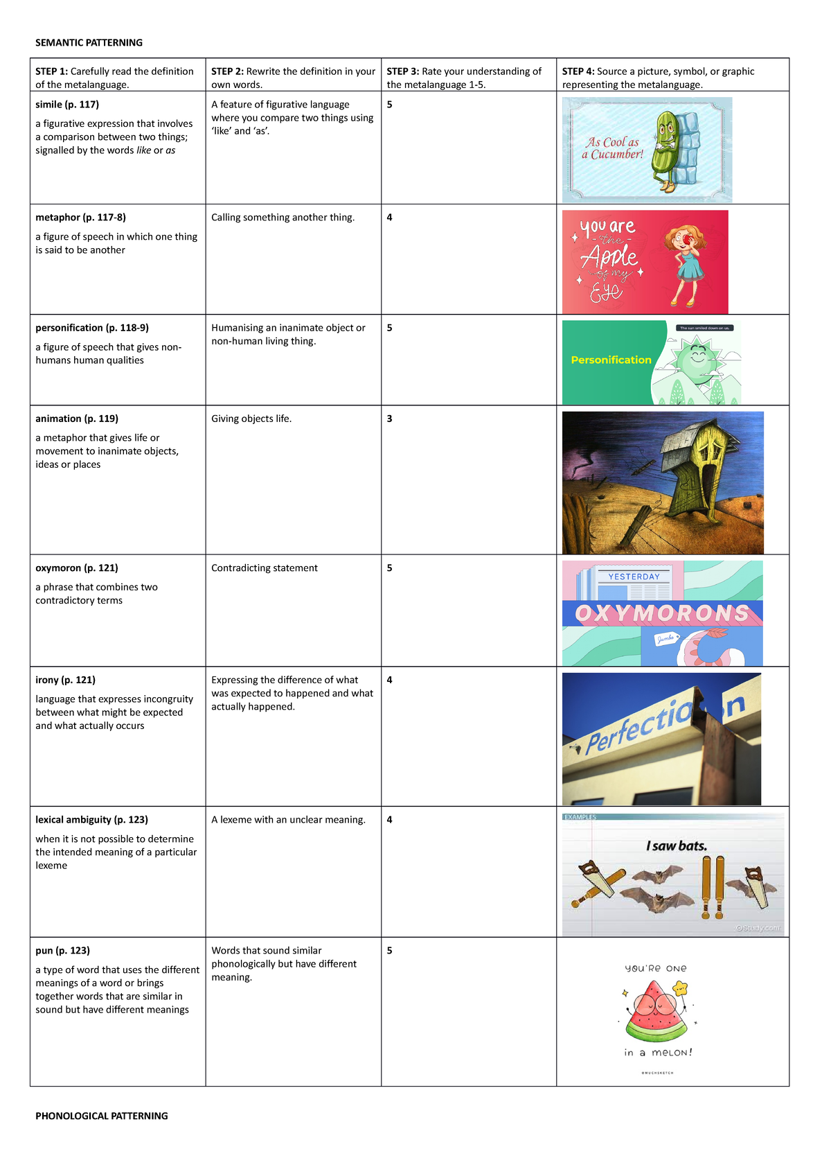 Forms of patterning - SEMANTIC PATTERNING STEP 1: Carefully read the ...