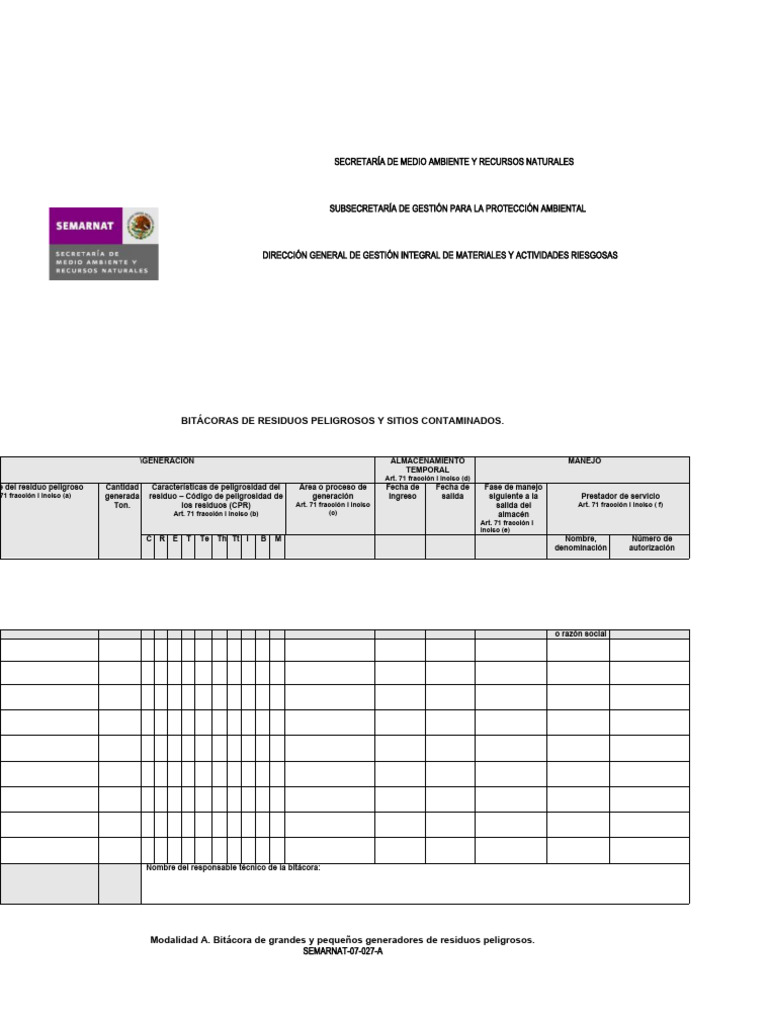 Bitacora RP Semarnat | PDF | Residuos | Entorno natural