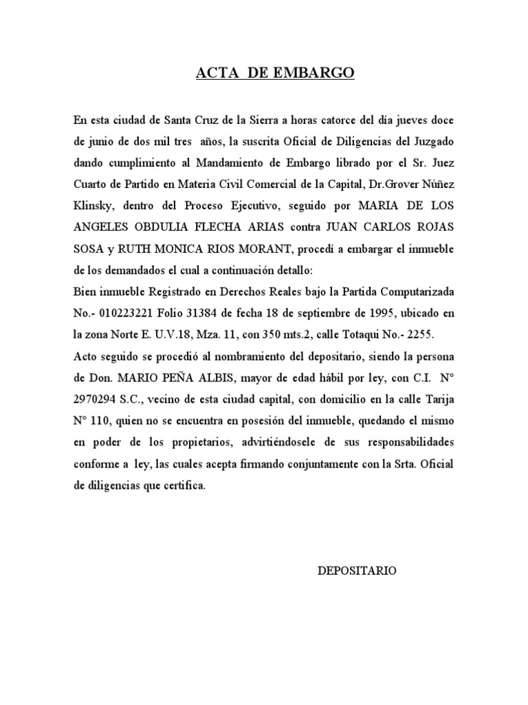 Modelo De Acta De Embargo/formato De Acta De Reuni N