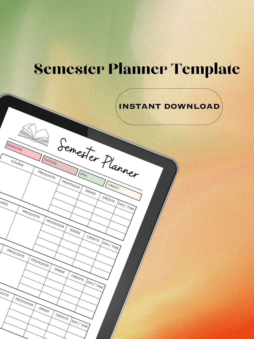Semester Planner Printable, Study Planner, Academic Planner, Instant ...