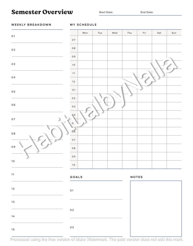 Semester Overview Template | Digital Planner Academic Insert | Digital ...