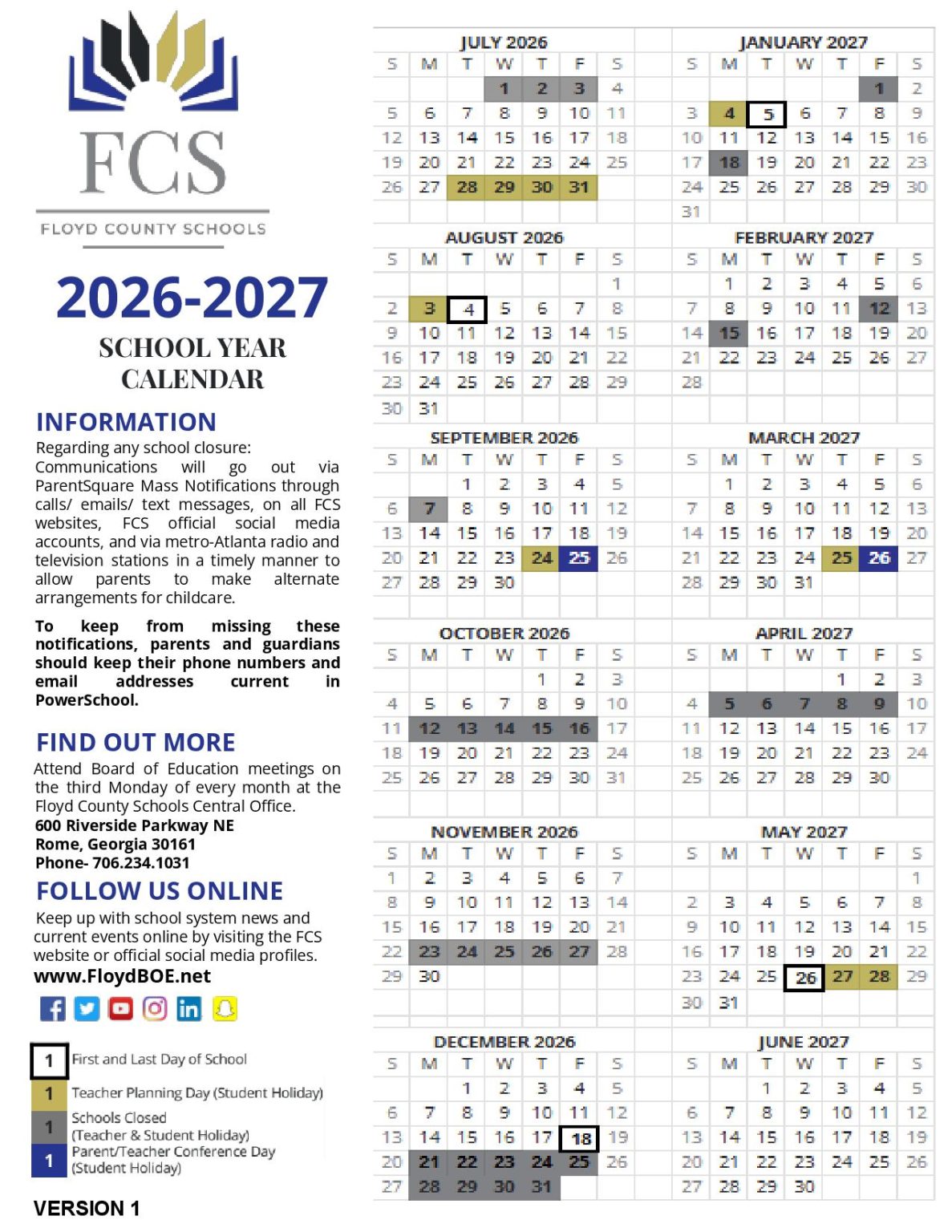 Floyd County Schools Calendar 2026-2027 | Holiday Breaks