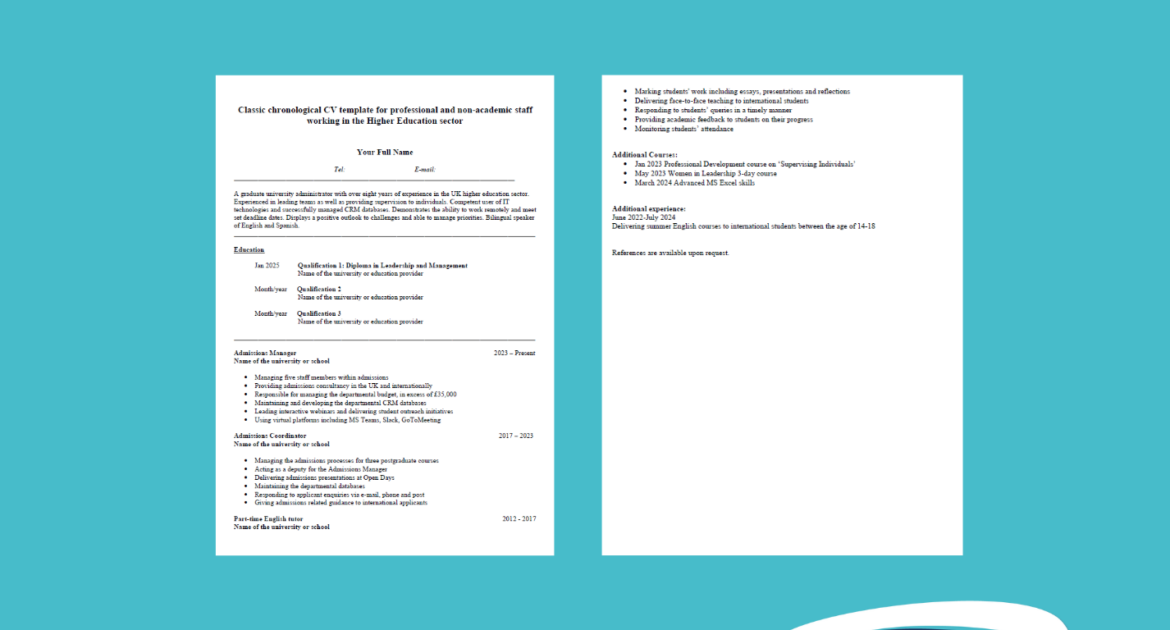 Classic Chronological CV Example - jobs.ac.uk