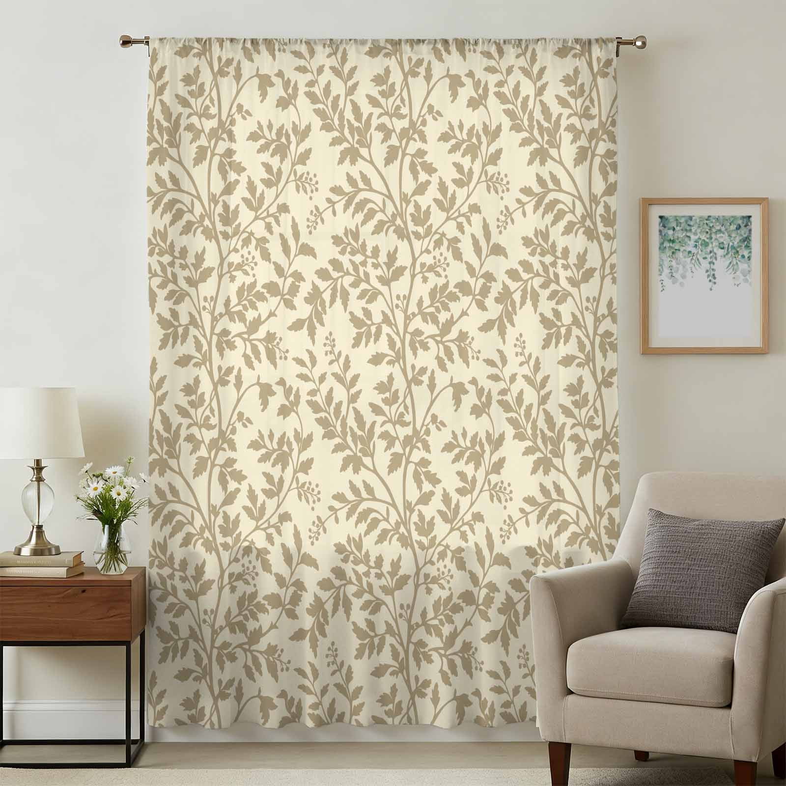 Beige Spring Floral Sheer Curtains 84 Inches Long for Living Room ...
