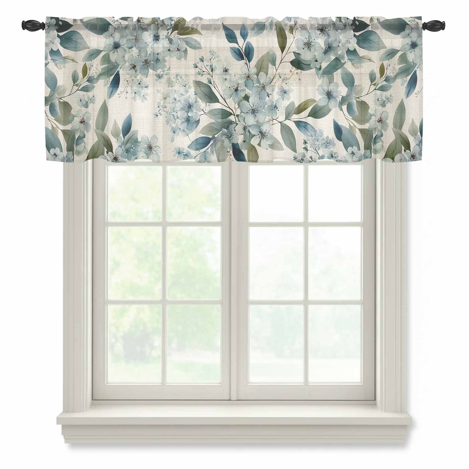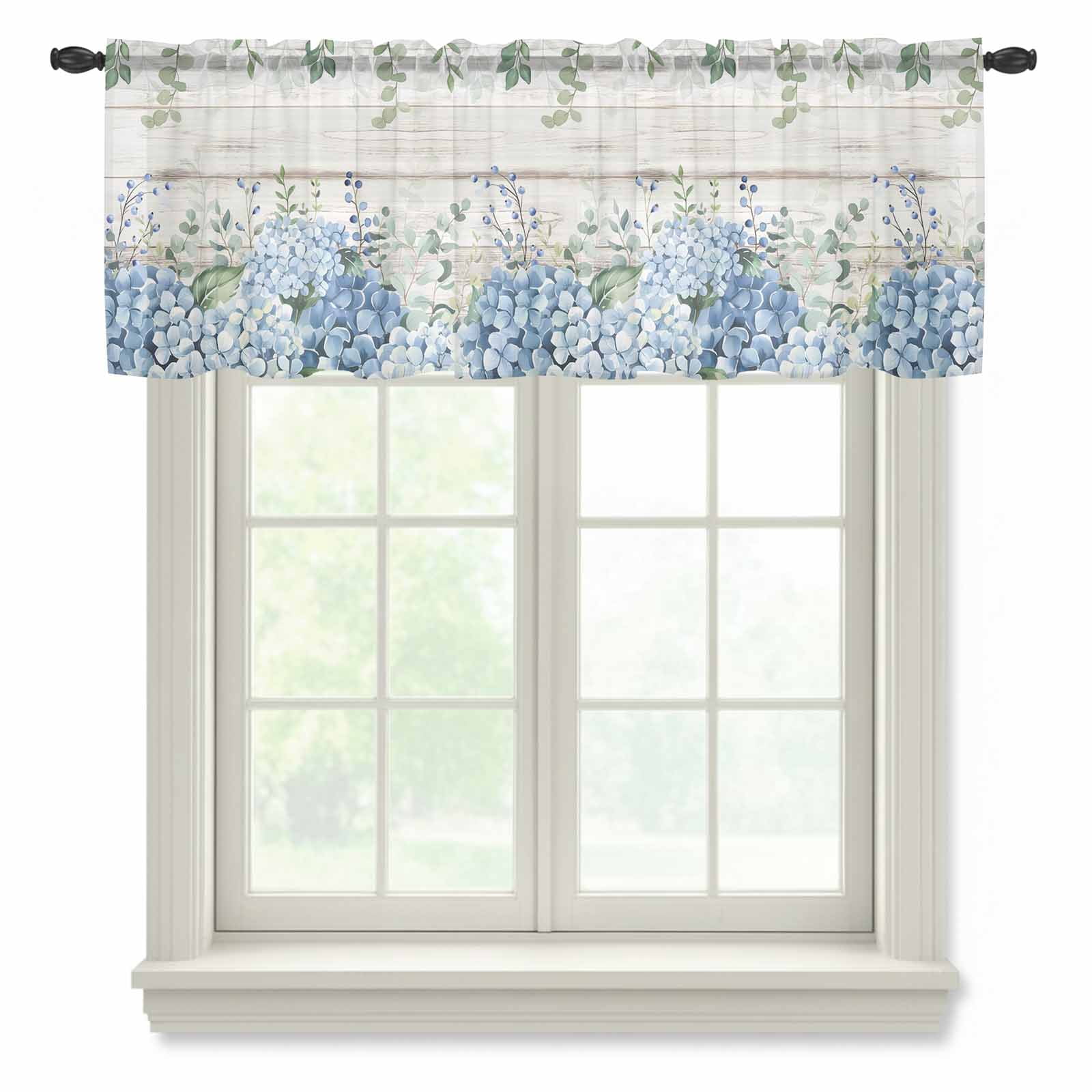 Blue Hydrangea Semi Sheer Valance Curtains Watercolor Spring Blue ...