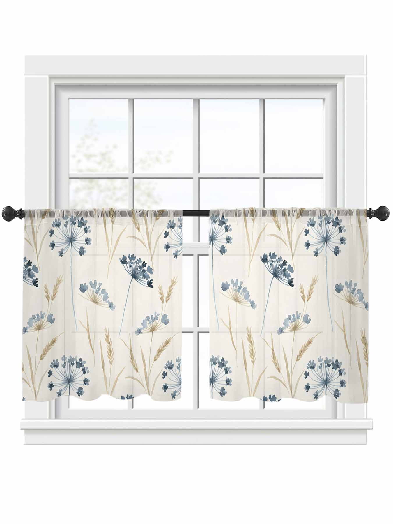 Blue Flower Window Sheer Curtain Gold Wheat Country Abstract Plant ...