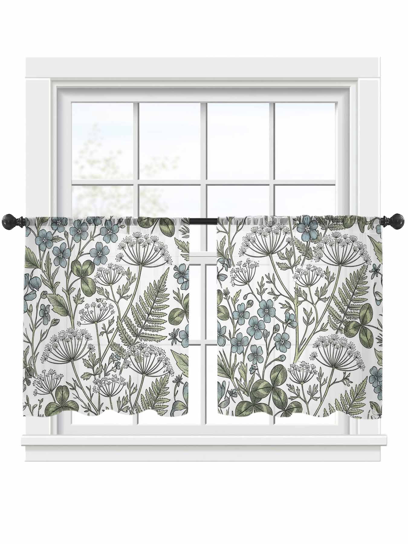 Botanical Flower Sheer Curtains 54 Inches Long for Bedroom, Spring ...