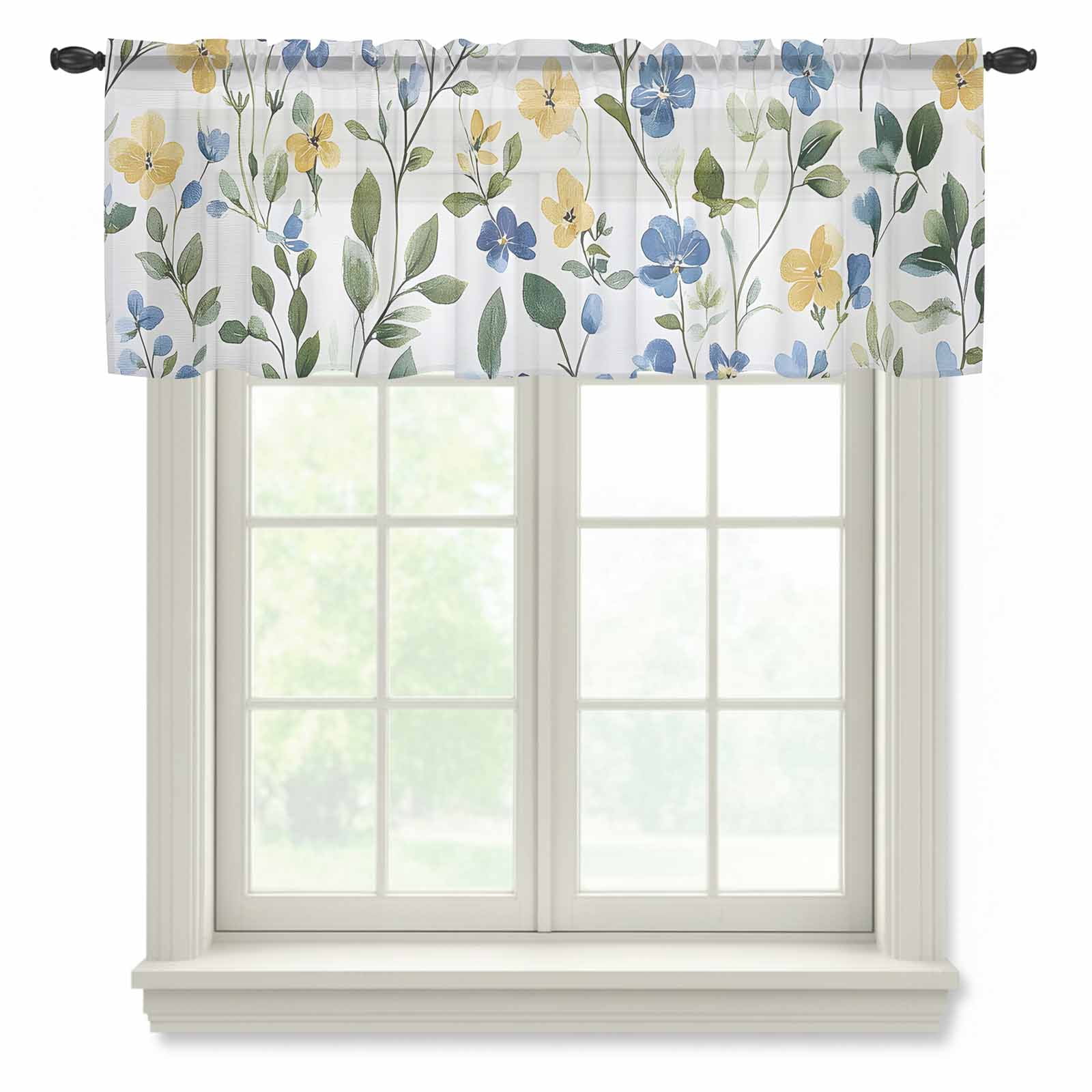 Blue Yellow Floral Semi Sheer Valance Curtains Spring Florals ...