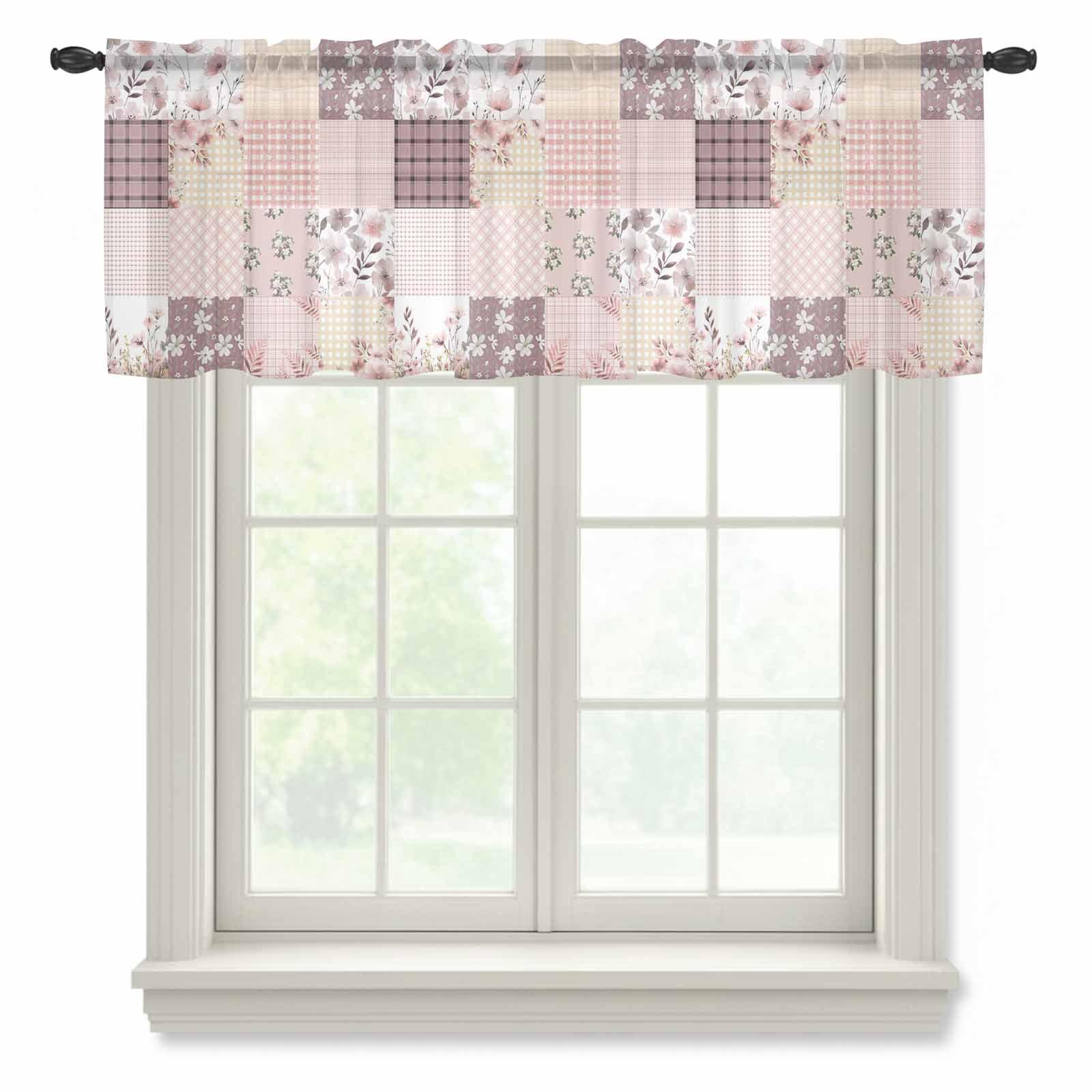 Bohemian Flower Patchwork Semi Sheer Valance Curtains Spring Vintage ...