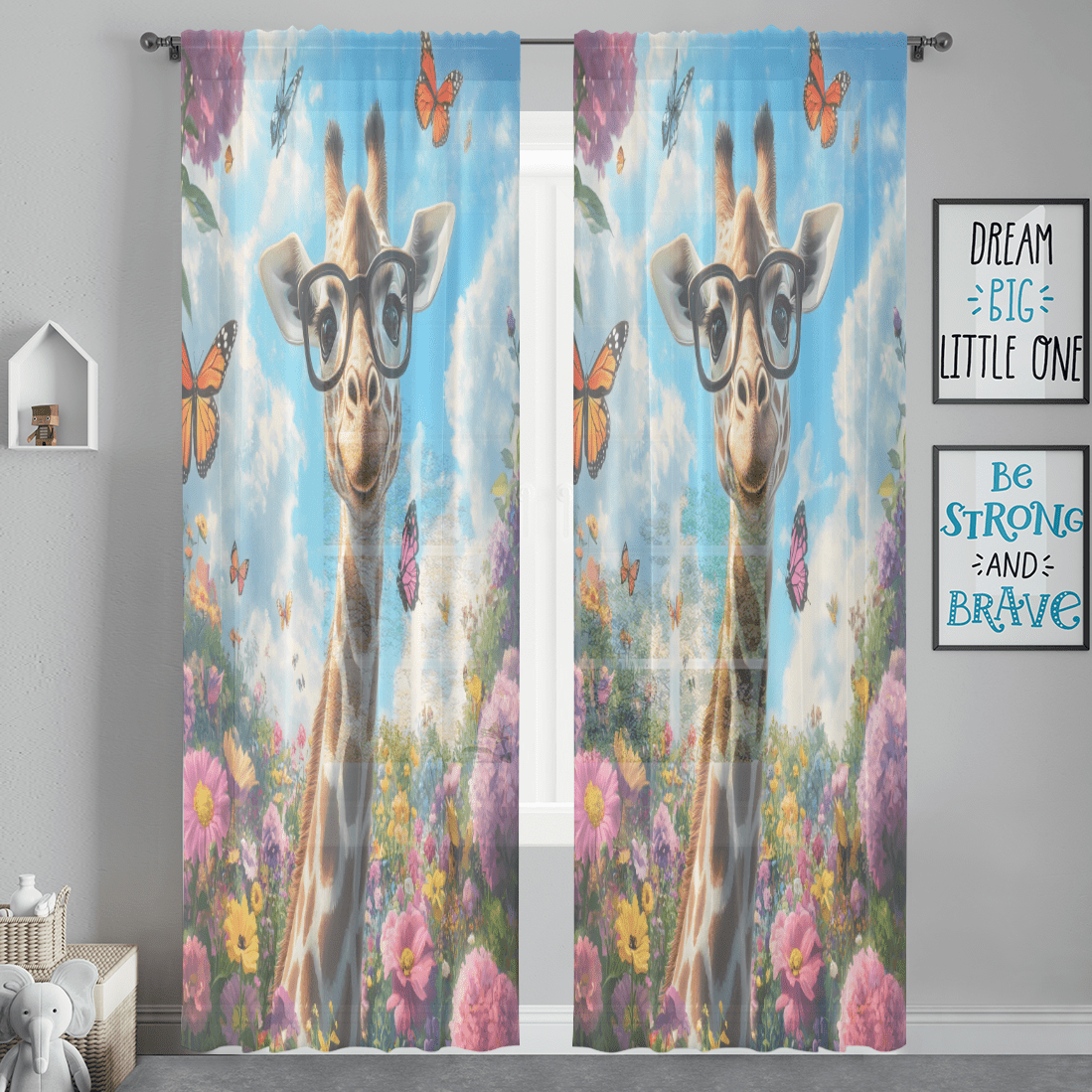 CURLYOOT Giraffe with Spring Flowers Sheer Curtains 84 Inches Long, 2 ...