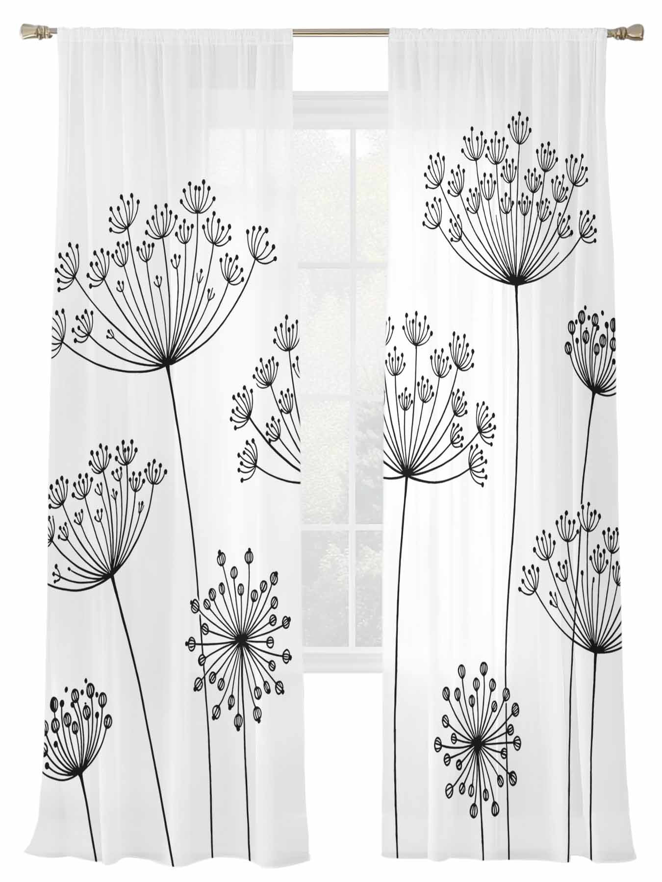 Dandelion Window Sheer Curtain Spring Country Black Dandelion Floral ...
