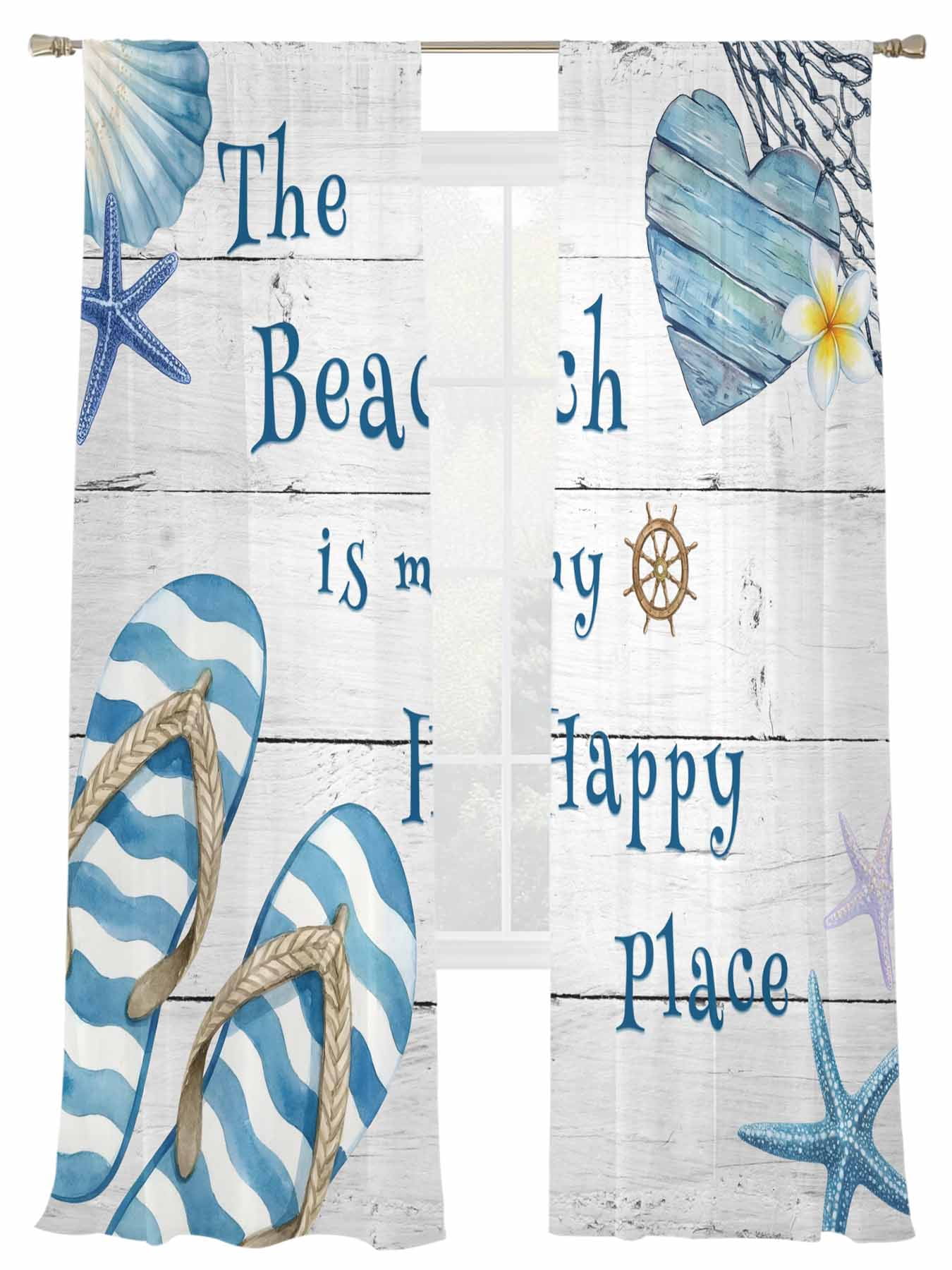 The Beach Is My Happy Place Window Sheer Curtain Summer Ocean Slippers ...