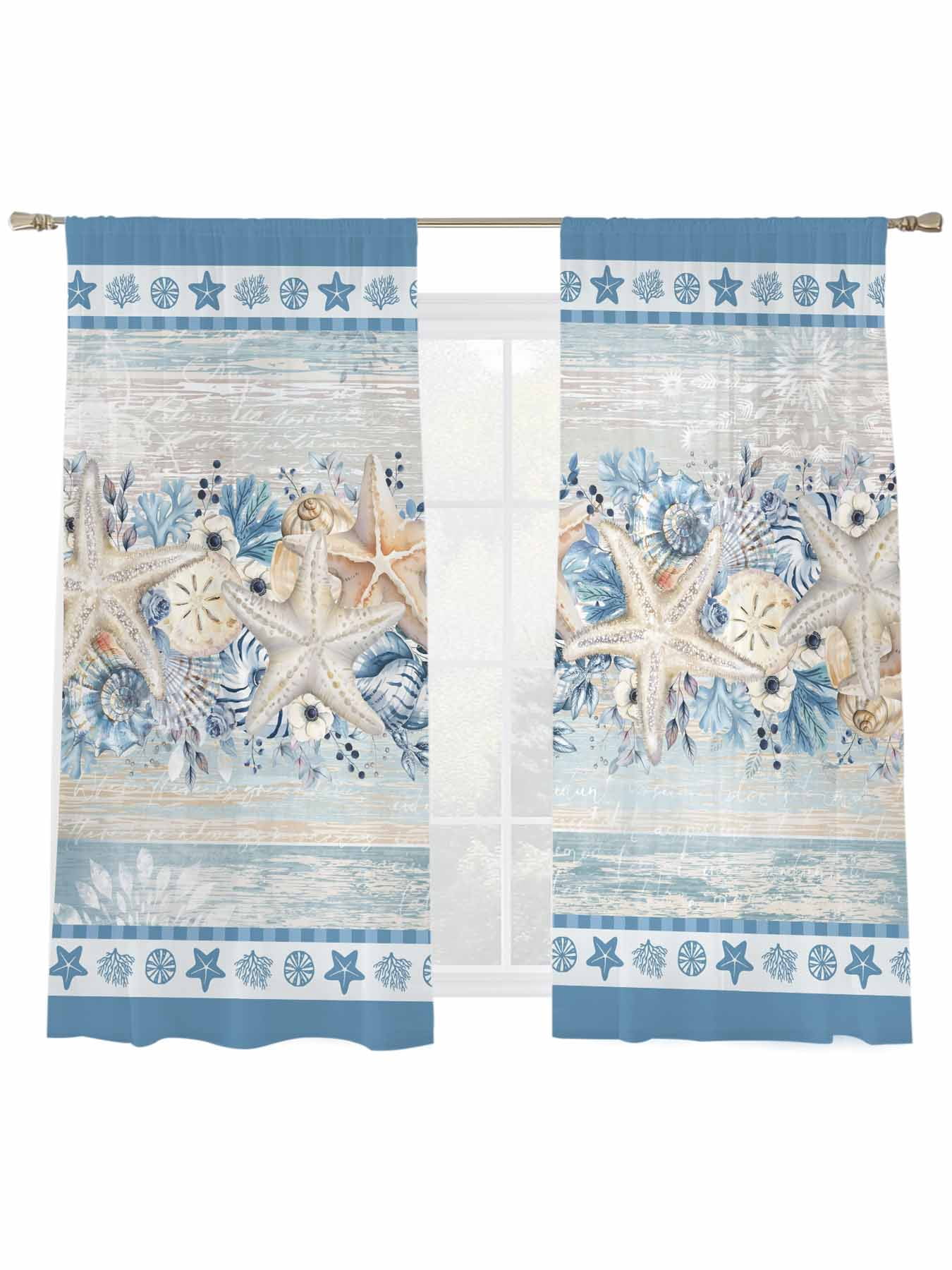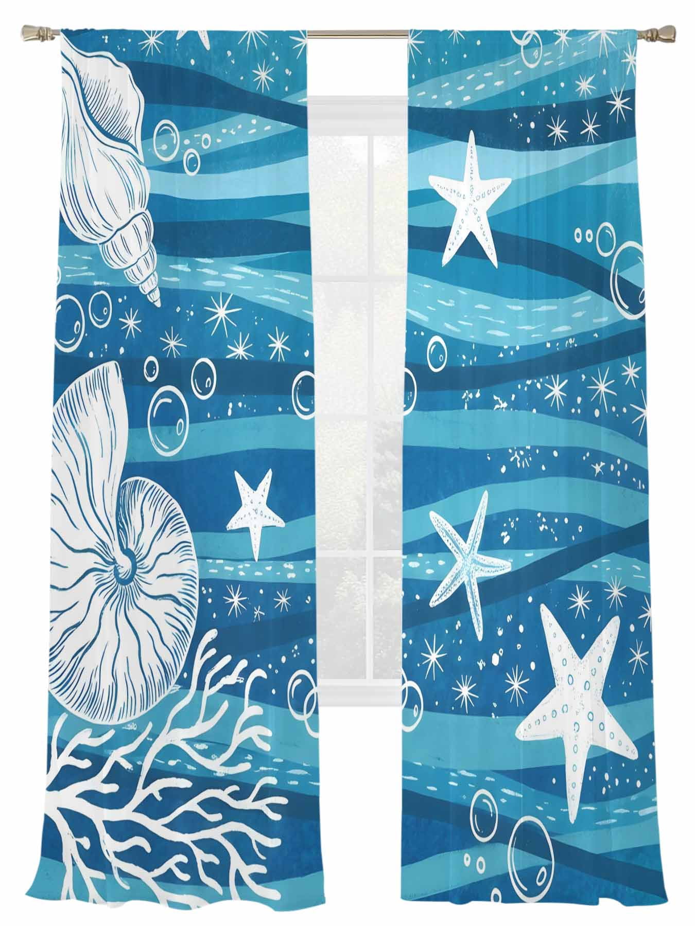 Coastal Starfish Sheer Curtains 84 Inches Long for Living Room, Blue ...