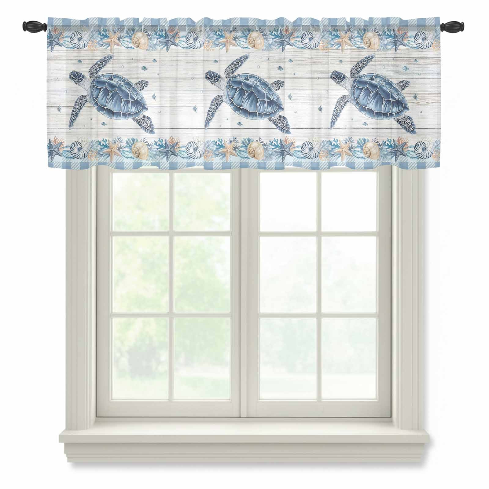 Blue Turtle Coastal Semi Sheer Valance Curtains Summer Starfish Beach ...