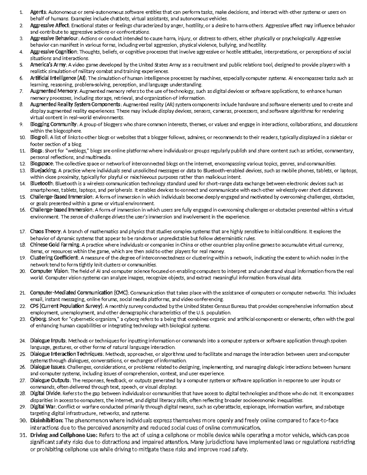 Definitions - 1. Agents: Autonomous or semi-autonomous software ...