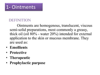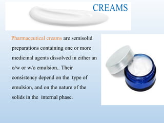 Semisolid dosage forms, Ointments, Gels, Creams | PPTX
