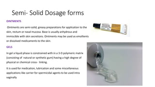 Introduction to Dosage Forms, solids, liquids, semi-solids, gaseous | PPTX