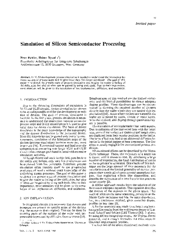 (PDF) Simulation of silicon semiconductor processing